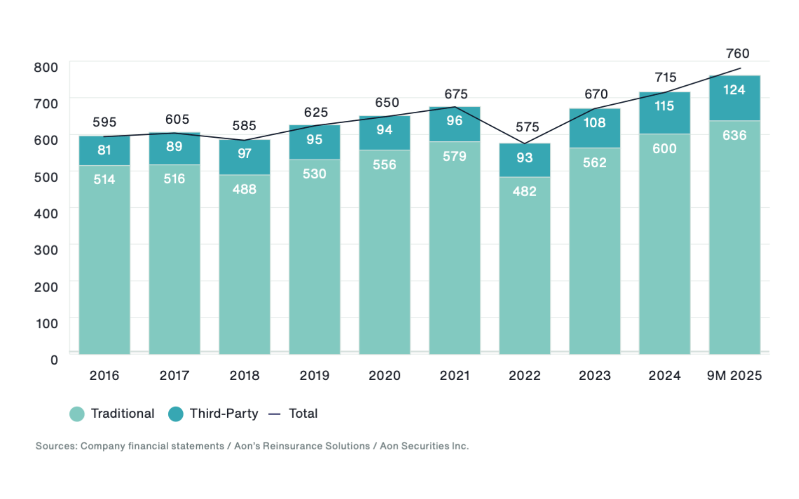 According to Aon’s January 2026 Reinsurance Market Dynamics Report, as of September 30, 2025, global reinsurer capital increased by more than 6% to US$760 billion from the end of 2024, with both traditional and alternative capital growing, mainly driven by retained earnings, unrealized gains, and new inflows from the sidecar and catastrophe bond markets.